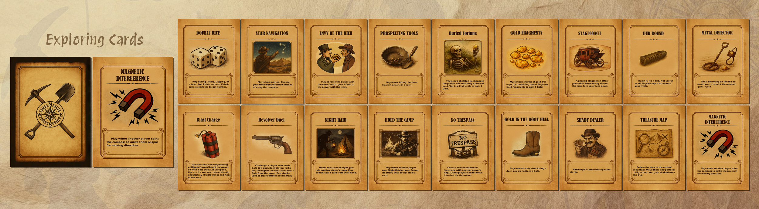 Many exploration cards are based on familiar Western tropes, making them easy for players to understand. And really, who wouldn’t want a tense duel to snatch gold from a rival prospector?